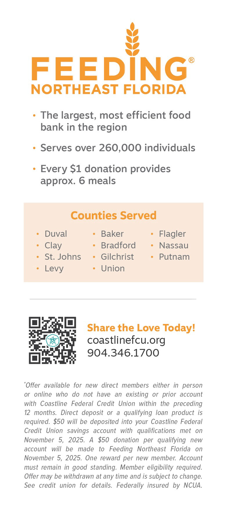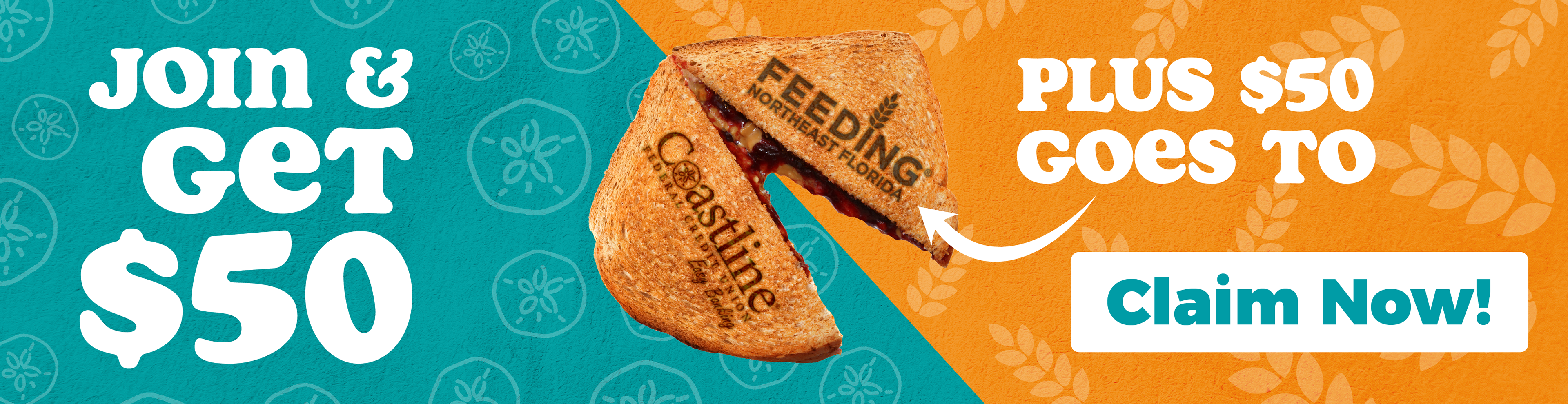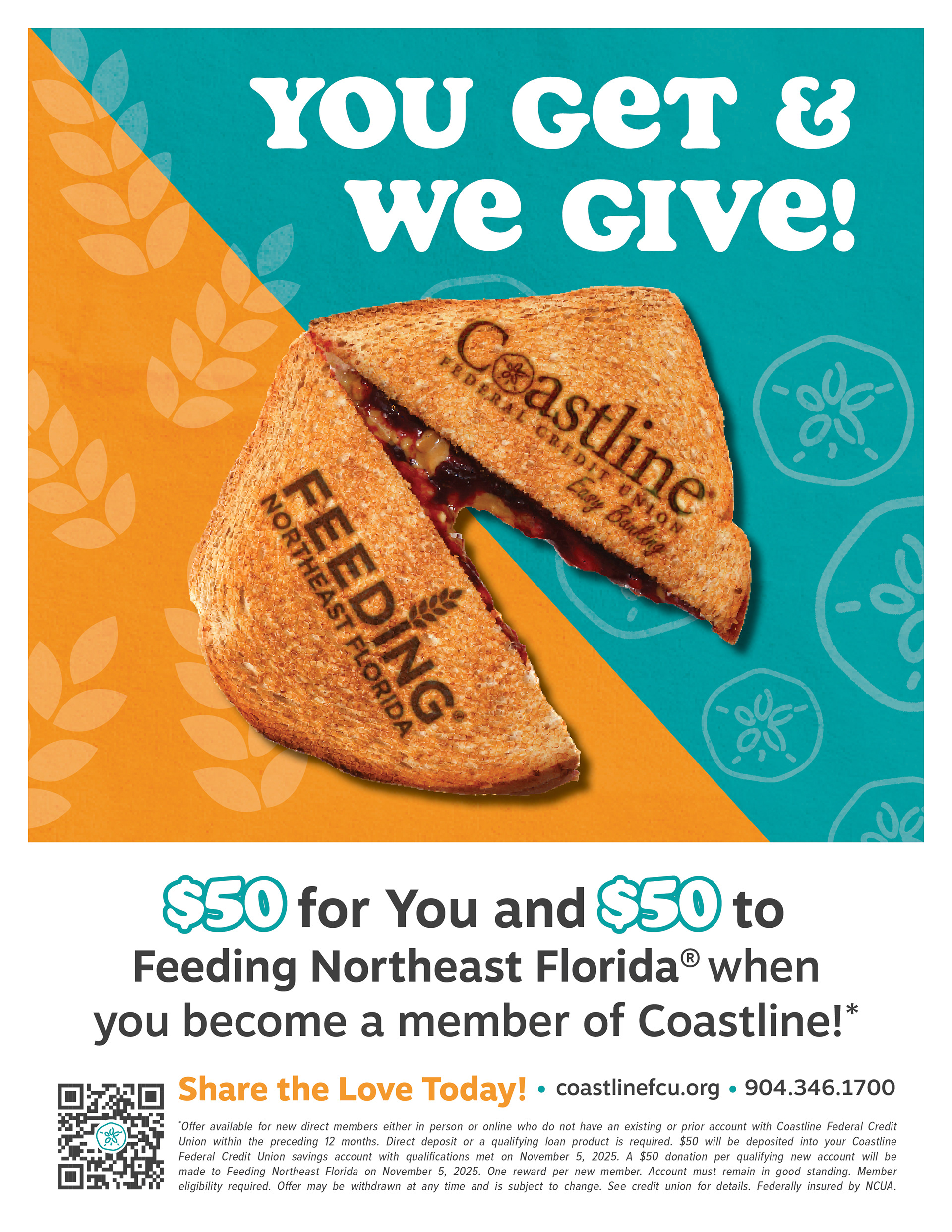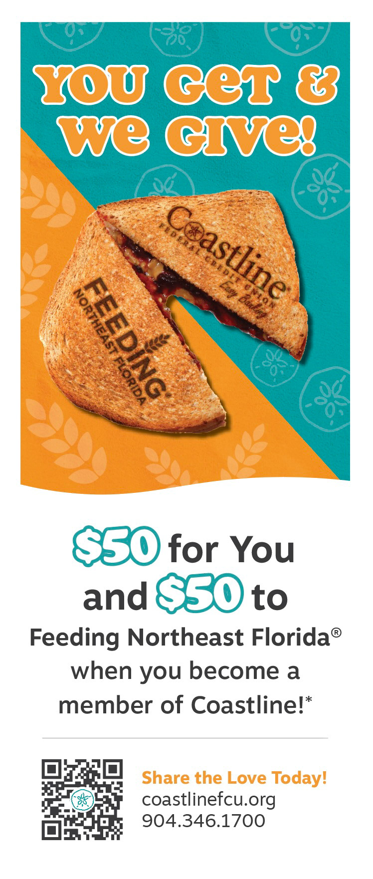 When a sandwich becomes a campaign… it's delicious! For Coastline Credit Union’s 50/50 campaign, I designed a fun way to share our great message. New members received $50, while another $50 was donated to Feeding Northeast Florida. To bring this to life, I designed a PB&J visual with both logos toasted into the bread—because nothing brings people together quite like a sandwich. Backed by Google Ads and an informational handout, the campaign turned a simple concept into a feel-good way to join, give, and make an impact.