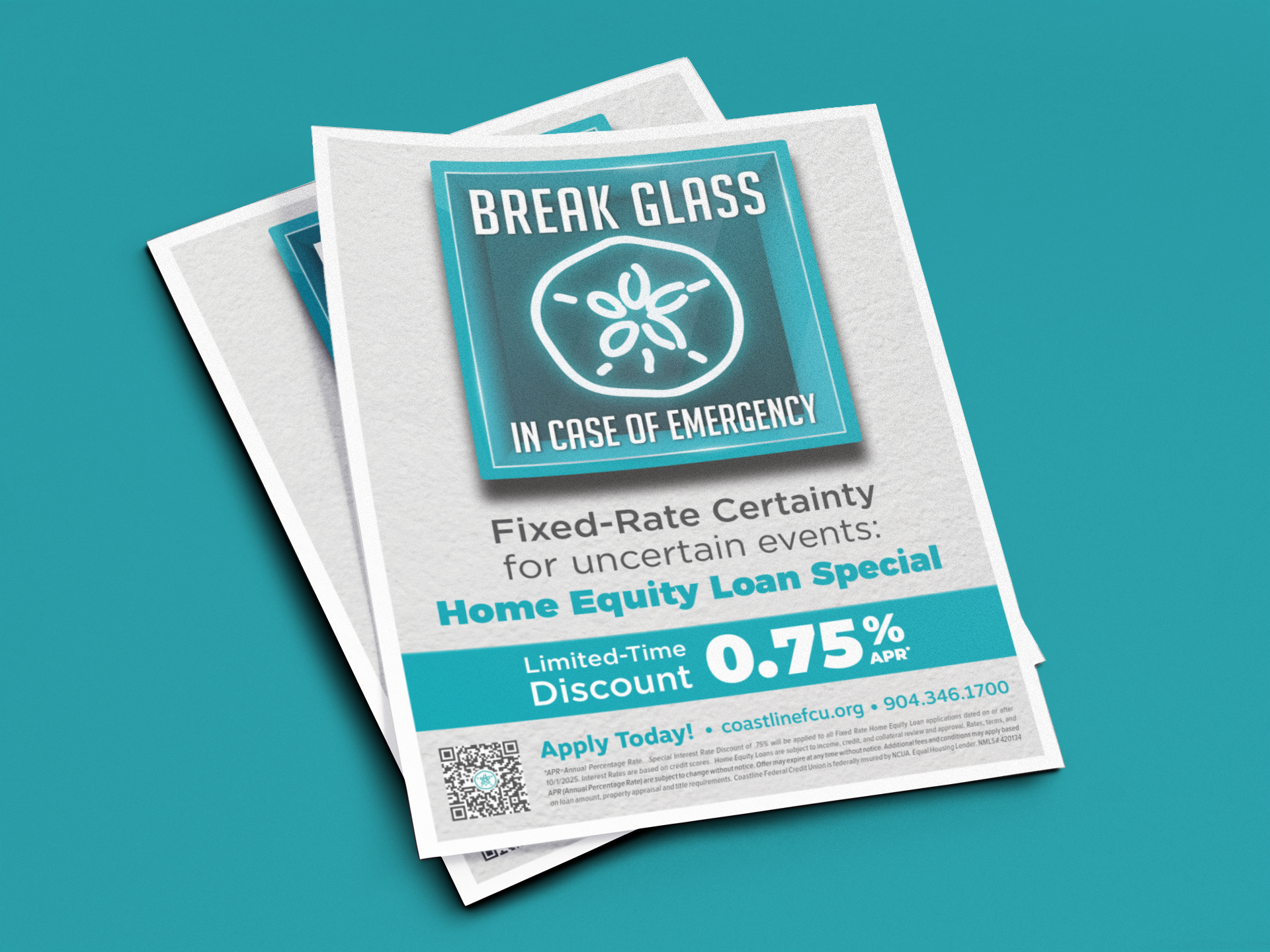 HELPP EMERGENCY! Just kidding, it's just an amazing rate! For this campaign, I was inspired by emergency glass boxes. They're something everyone recognizes, and it instantly communicates safety and reliability — which felt like the perfect way to connect to a home equity loan. I wanted the design to feel like a safety net people could count on when life throws surprises, while still keeping it bold, eye-catching, and easy to understand.